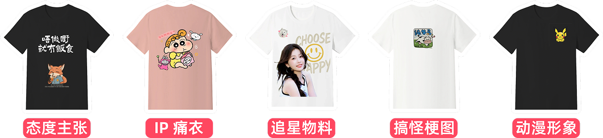 - 海量印花库:多元化场景标签, 图案/文字/版型自由组合
